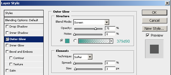 16. Einame į Layer - Layer Style - Blending Options ir pasirenkame koregavimo nustatymą Outer Glow.