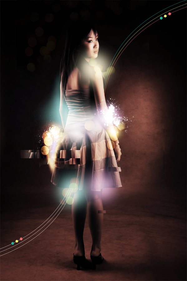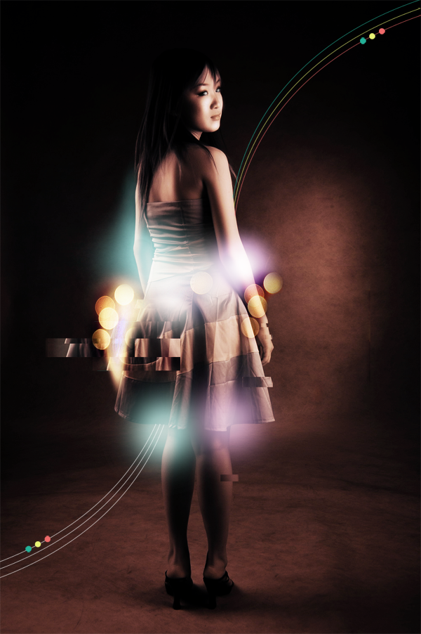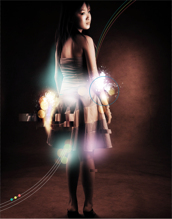 11. Pakartojame 9-tą veiksmą, tačiau apskritimą nusipaišome sijono apačioje. Einame į Layer - Layer Style - Blending Options ir pasirenkame koregavimo nustatymą Outer Glow.