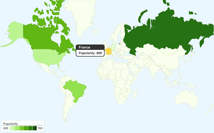 Google pavyzdys oficialiame Google Motion Charts puslapyje. Čia taip pat galite rasti visas instrukcija, pavyzdžius ir kt. kas susiję su Google Motion Charts. Google pavyzdys Google Ajax code playground puslapyje Google Geo MapGoogle Geo Map leidžia lengvai sukurti žemėlapį, kuriame galima žiūrėti duomenis pagal kontinentą, regioną ar kokią nors šalį.