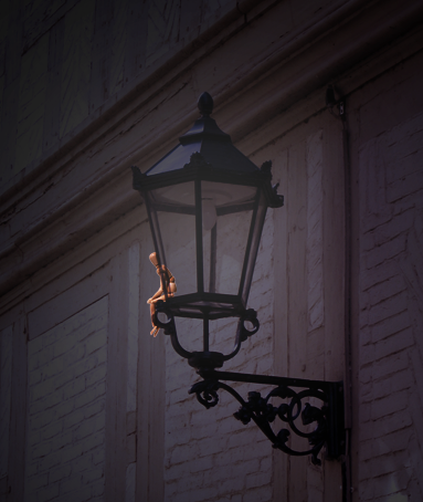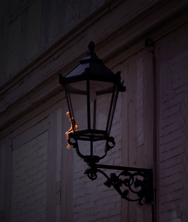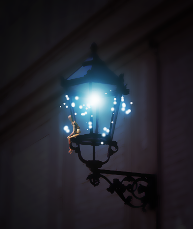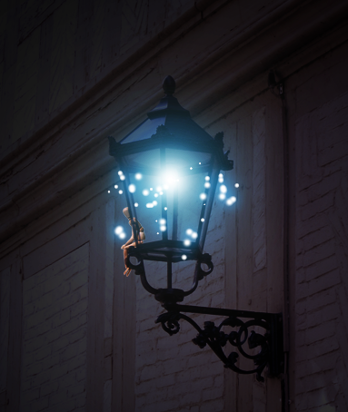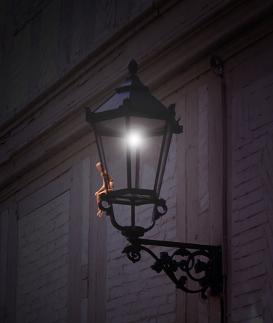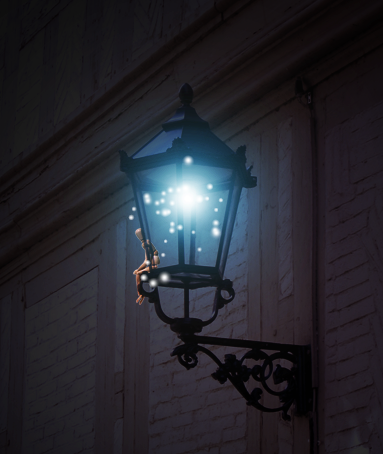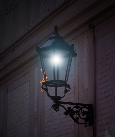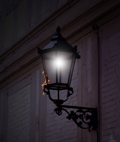 13. Einame į Edit - Transform - Scale ir susimažiname žmogeliuką taip, kad jį galėtumėte pasodinti ant žibinto. Pakeičiame žmogeliuko Blend Mode į Overlay.