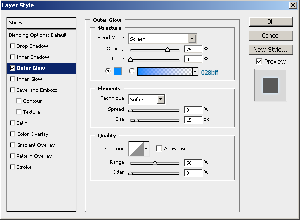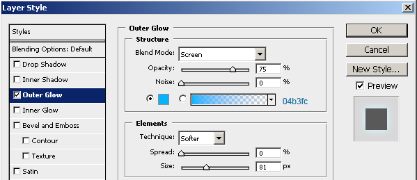 18. Einame į Layer - Style - Blending Options. Pasirenkame nustatymą Outer Glow.