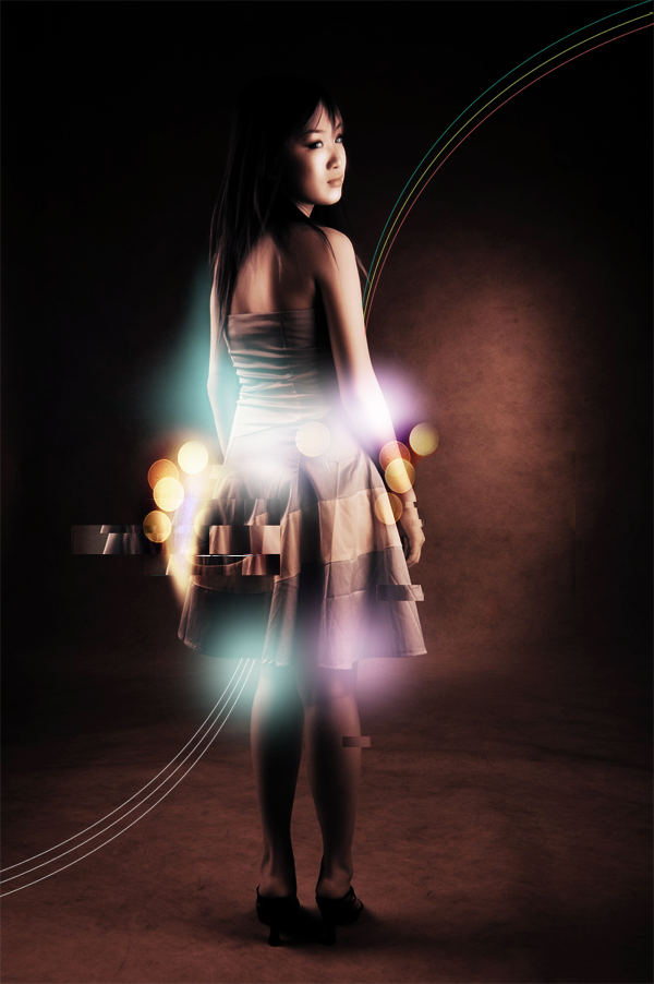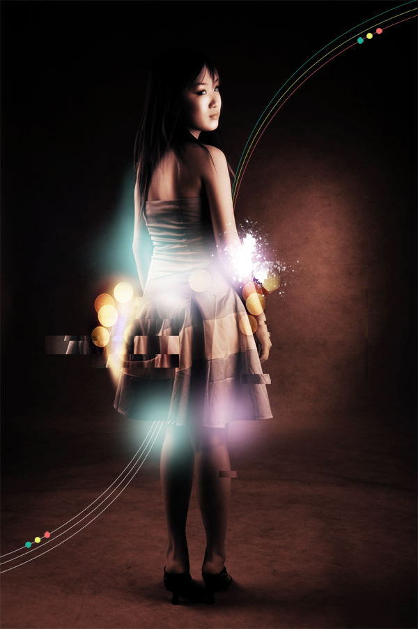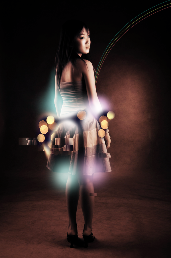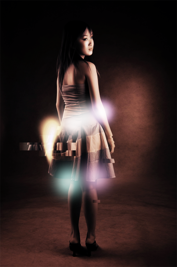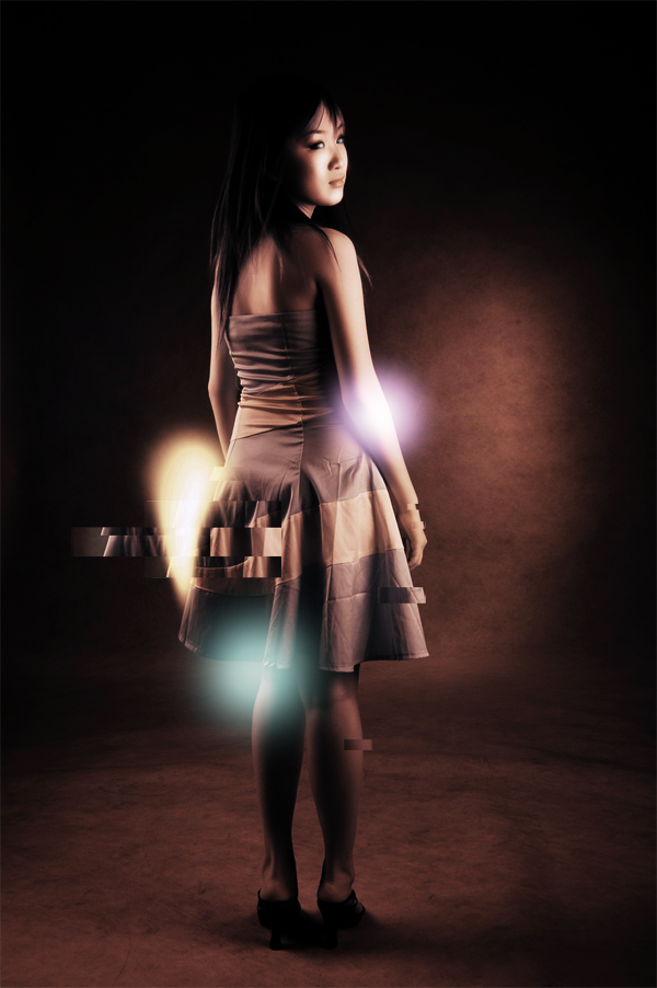 11. Pakartojame 9-tą veiksmą, tačiau apskritimą nusipaišome sijono apačioje. Einame į Layer - Layer Style - Blending Options ir pasirenkame koregavimo nustatymą Outer Glow.